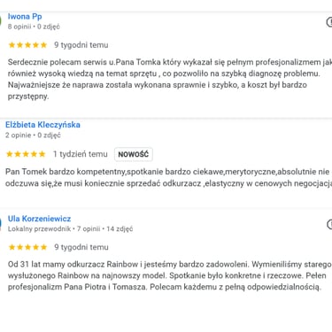 Najważniejszy jest dobry humor! A od strony praktycznej, będzie nam bardzo miło, jeśli przygotujesz swój stary odkurzacz Rainbow wraz ze wszystkimi akcesoriami (szczotki, rury itp.) w jednym miejscu. Usprawni to proces wyceny i pozwoli na pełną diagnostykę.